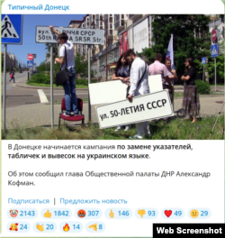 Наступним кроком – зачистили всі білборди з українською рекламою і повернули назви вулиць та проспектів на кшталт «50 років СРСР», «Леніна» чи «Жукова», які українська влада перейменовувала в рамках декомунізації.