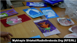 Учащиеся начальных классов старательно вырисовывают ангелочков вслед за киевским волонтером Евгением Веселовым. Он проводит такие мастер-классы во всех школах и интернатах, куда приезжают волонтеры.